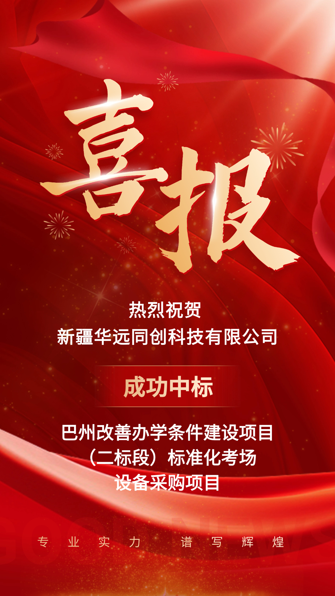 金秋時節收獲多,中標喜訊乘“豐”來!近日,在全體員工的共同努力下,新疆華遠同創科技有限公司成功中標巴州改善辦學條件建設項目(二標段)標準化考場設備采購項目。