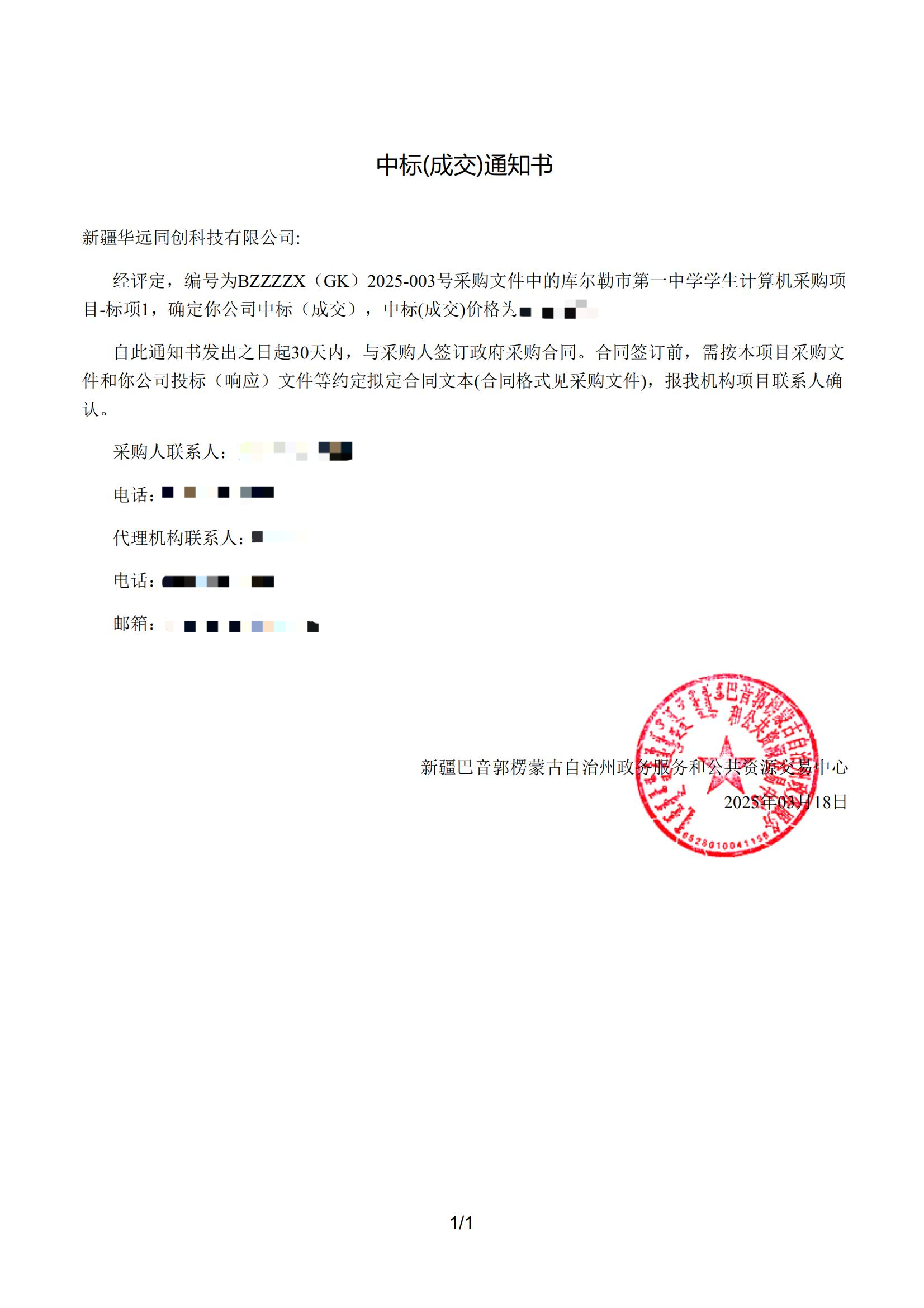 2025年3月18日,新疆政府采購網發布中標公告,新疆華遠同創科技有限公司憑借卓越的技術實力與優質的服務方案,成功中標庫爾勒市第一中學學生計算機采購項目,打響開年第一標!